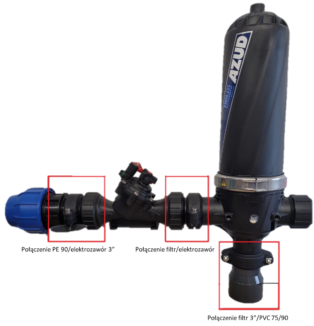 - Połączenia filtrów Azud 2” i 3” w instalacjach PE, PVC