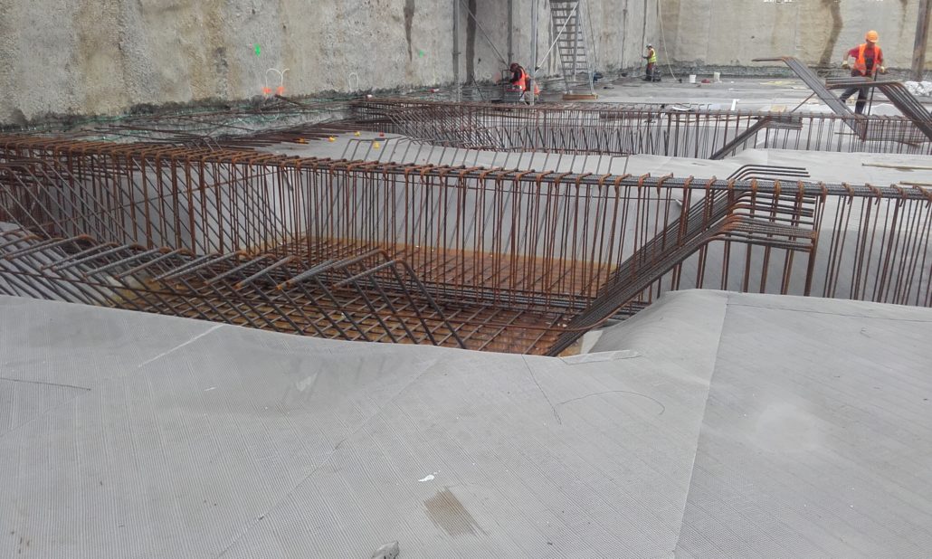 ZAKRES PRAC: Hydroizolacja fundamentów – Izolacja płyty fundamentowej w obrębie ścian szczelinowych.