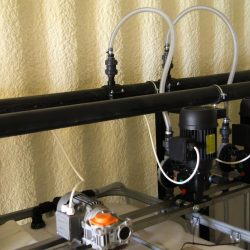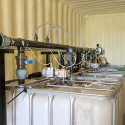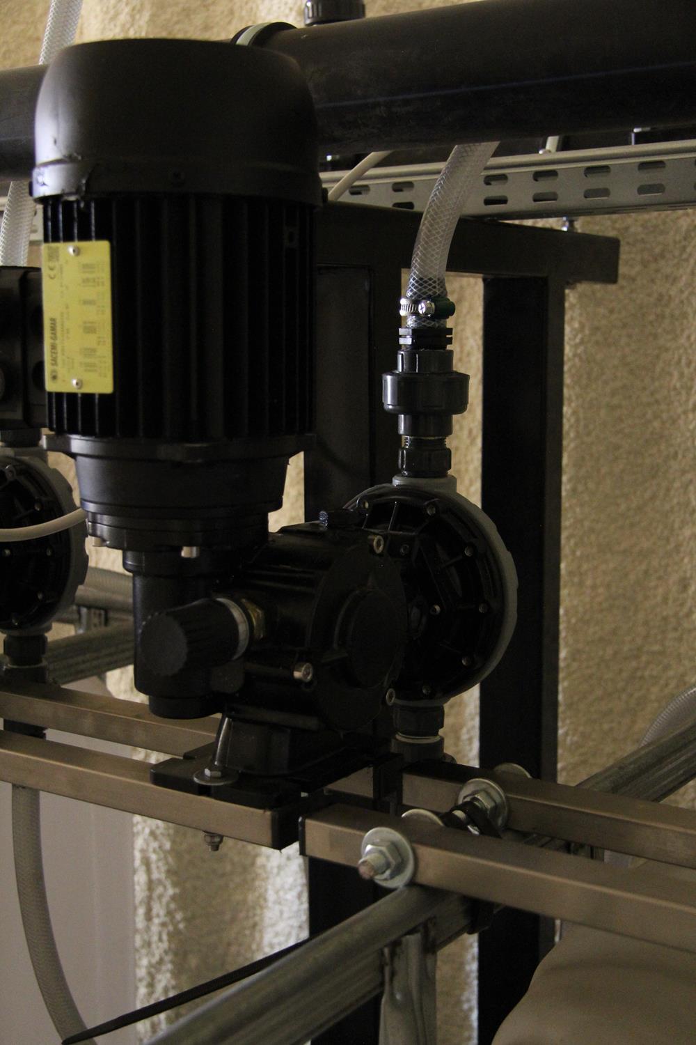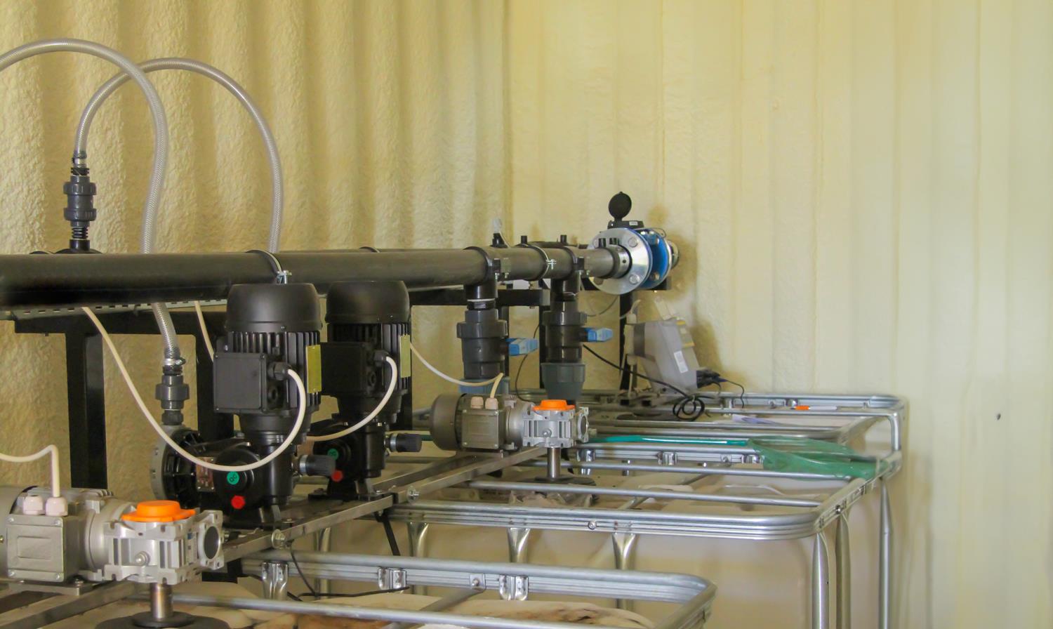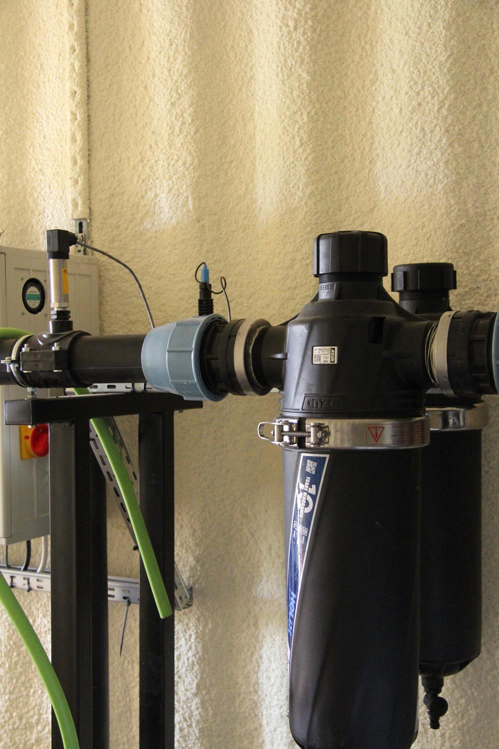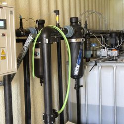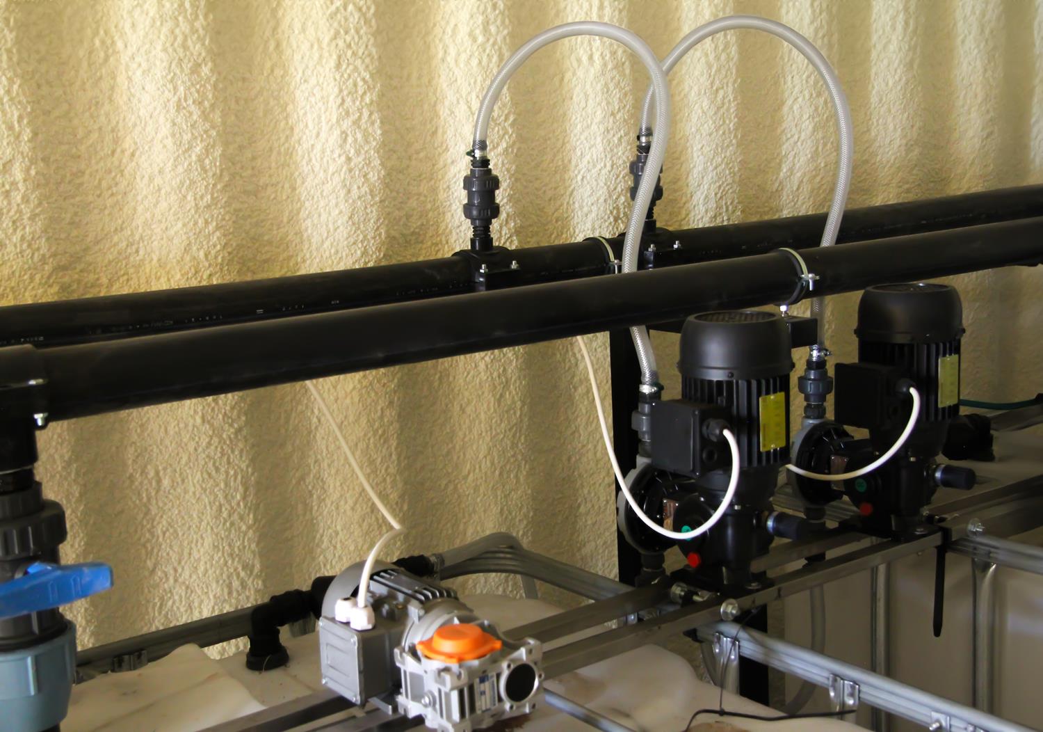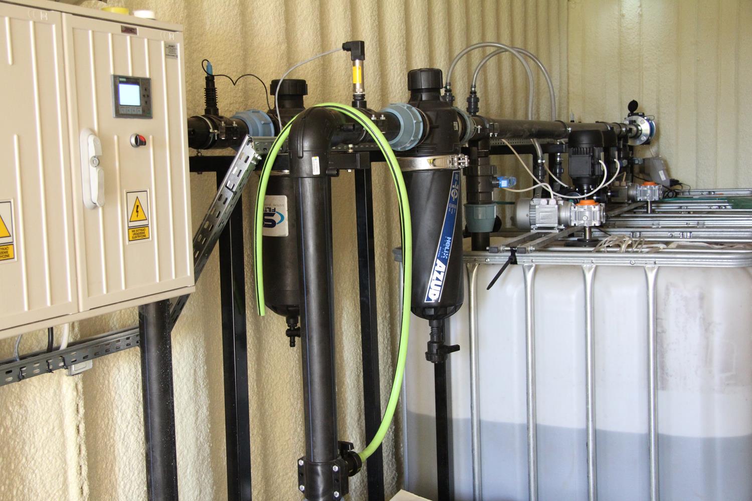 WYKORZYSTANE ROZWIĄZANIA: Linia kroplująca AZUD, Filtry AZUD Helix, armatura PEF, zawory kulowe, zawory zwrotne ze sprężyną, elektrozawory Bermad, wodomierz typu Woltmann, pompa dozująca TAURUS, pompa dozująca stężony kwas GEA, mieszadła