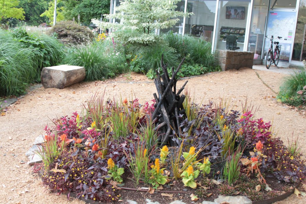 Osmalone gałęzie podświetlone pomarańczowym światłem led muszą po zmroku dawać wrażenie prawdziwego ogniska. Naszej uwadze nie umknęła oczywiście linia kroplująca i automatyczny system nawadniania – o czym za chwilę.
