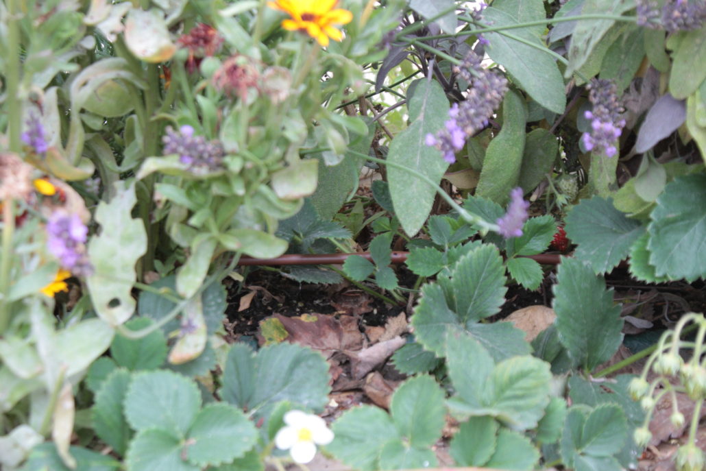 Wśród roślin mięta, szałwia, bazylia czy pyszne truskawki – nic tylko zasiąść do posiłku i częstować się.