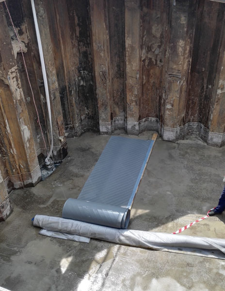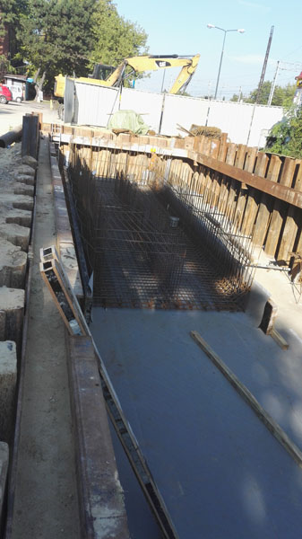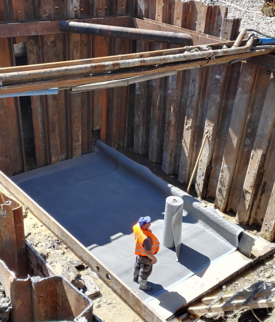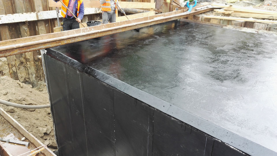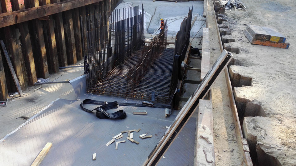 ZAKRES PRAC: Hydroizolacja fundamentów – Izolacja płyt fundamentowych, izolacja ścian fundamentowych i rygla górnego przejść podziemnych, uszczelnienie dylatacji pomiędzy segmentami.
