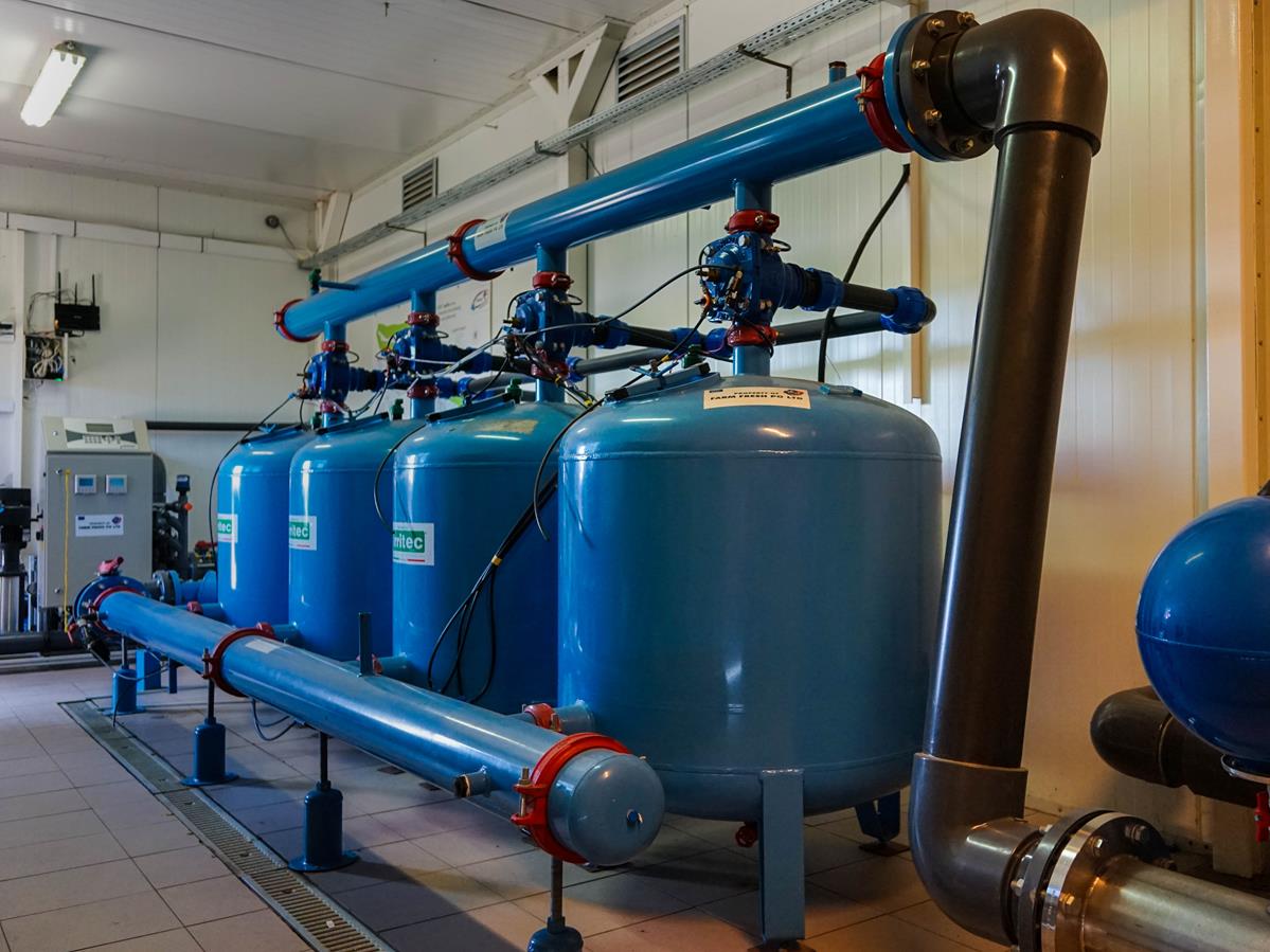 System filtracji stanowią 4 filtry piaskowe 900 mm o przepustowości 160 m3, jednak w związku z wysoką jakością wody, przekroczenie tej wartości przy największych sekcjach nie stanowi problemu. Ze względu na rozmiary plantacji i fakt, że nawadnianie trwa w trybie ciągłym, filtry płukane są ze stałym interwałem czasowym. Układ taki pozwala na uniknięcie spadku wydajności nawadniania, spowodowanego zapychaniem filtrów.
