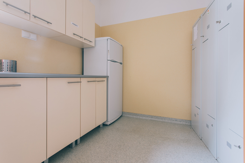 WYKORZYSTANE MATERIAŁY/ PRODUKTY/ ROZWIĄZANIAHomogeniczna wykładzina PVC Norma Tarkett zabezpieczona fabrycznie powłoką PUR, odporna na działanie mikroorganizmów okładzina ścienna Modus