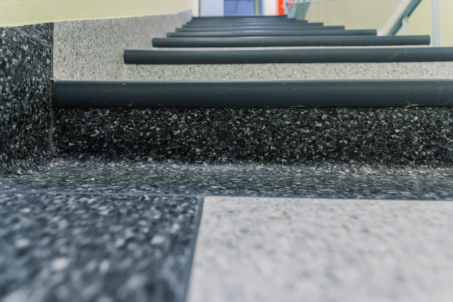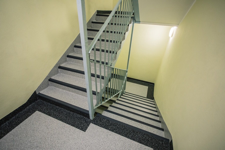Wykładzina homogeniczna PVC na klatkach schodowych w budynku mieszkalnym