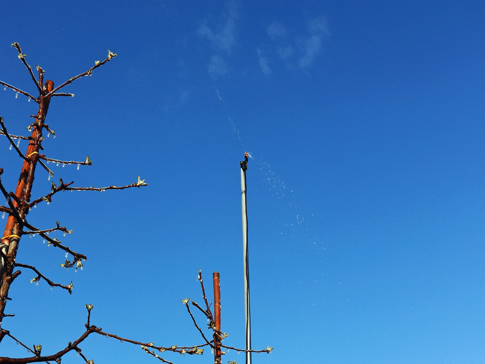 Zraszanie antyprzymrozkowe jest najskuteczniejszym sposobem ochrony przed skutkami przymrozków. Nie wymaga żadnych nakładów pracy w trakcie działania.