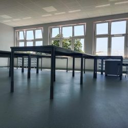Bez wątpienia pierwszym skojarzeniem związanym z kolorem niebieskim jest niebo i woda – spokój i odprężenie. Zastosowanie go wprowadza uczucie lekkości i świeżości. W świecie przyrody, to właśnie niebieski posiada najwięcej odcieni, przez co jest uważany za jedną z najbardziej atrakcyjnych wizualnie barw. Doskonale współgra on z innymi pigmentami, dzięki czemu jest wbrew pozorom, wyjątkowo neutralny i wszechstronny w zastosowaniu. Różne odcienie niebieskiego z powodzeniem sprawdzają się zarówno jako element dominujący w danym pomieszczeniu, ale także jako kolor uzupełniający. W zależności od naszych upodobań i efektu końcowego jaki chcemy uzyskać, niebieski akcent dotyczyć może detali lub dużych powierzchni, na przykład podłogi. Takie rozwiązanie zastosowano podczas remontu sal lekcyjnych w Szkole Podstawowej w Janówku Pierwszym, gdzie wykorzystano wykładzinę Tarkett Topaz 70 w odcieniu Click Blue Grey, którą dostarczyła firma Budmech.