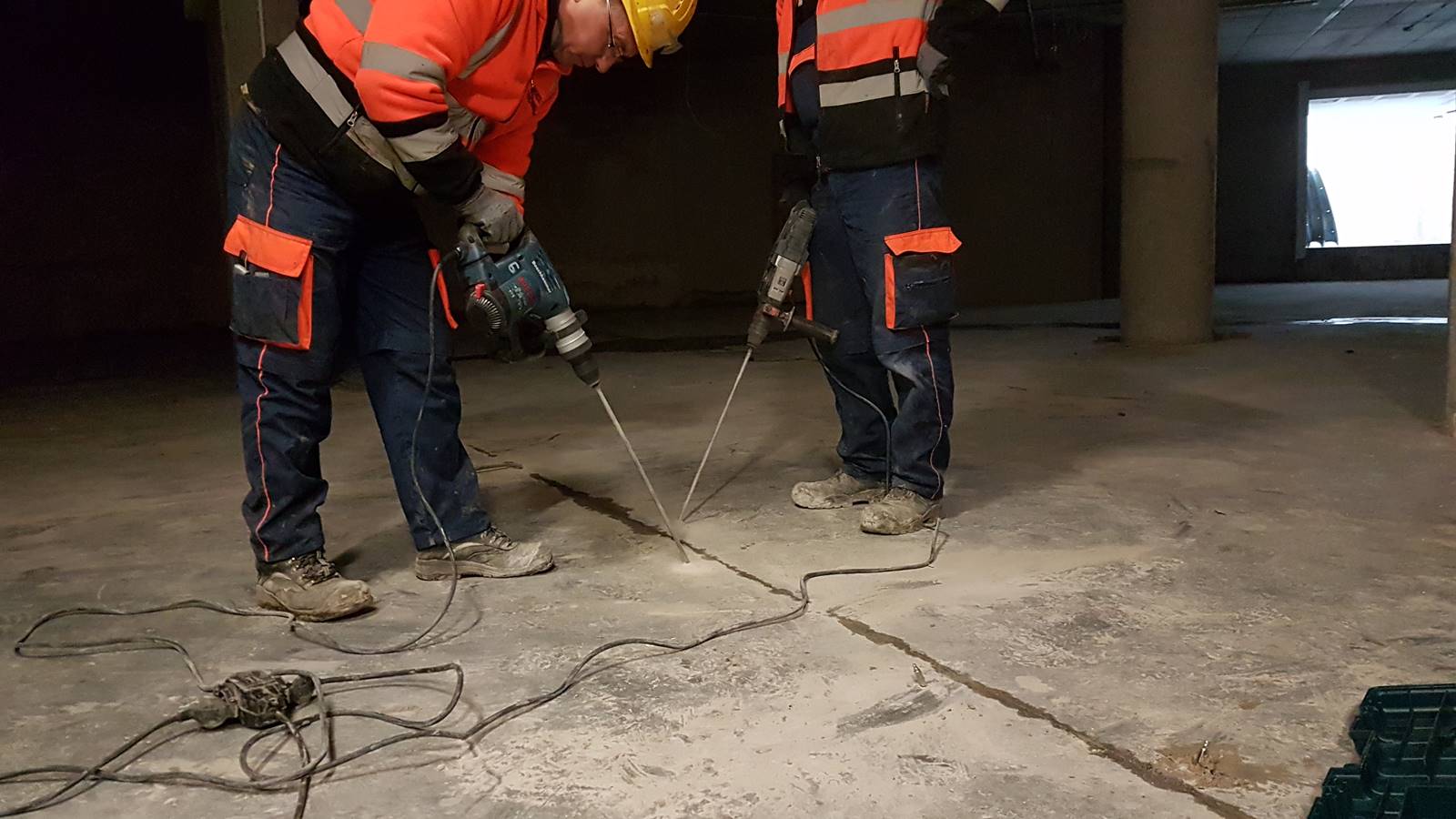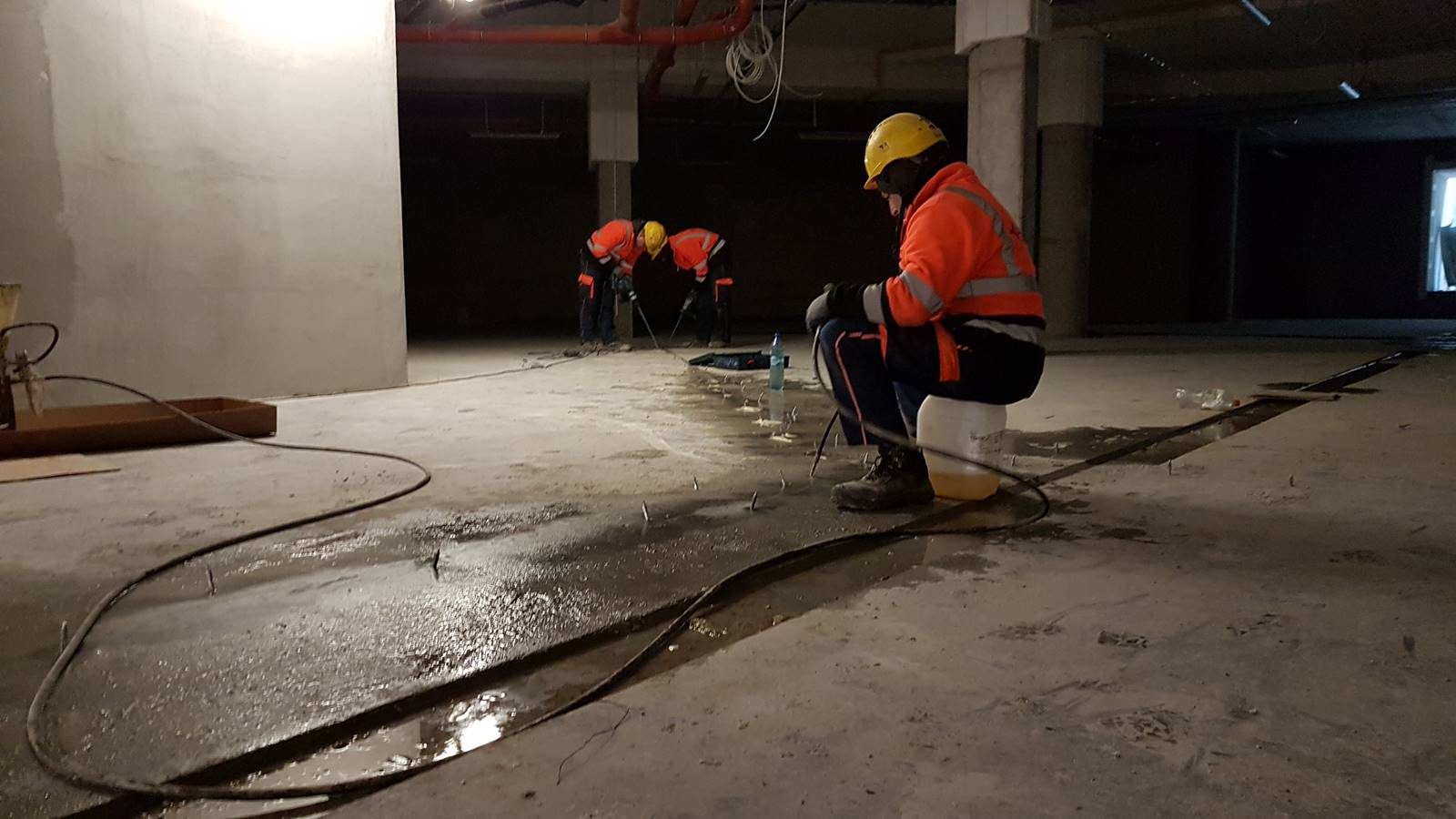 ZAŁOŻENIA PROJEKTOWE: Uszczelnienie rys w płycie fundamentowej, uszczelnienie styku ściana szczelinowa – płyta fundamentowa metodą iniekcji ciśnieniowej.
