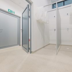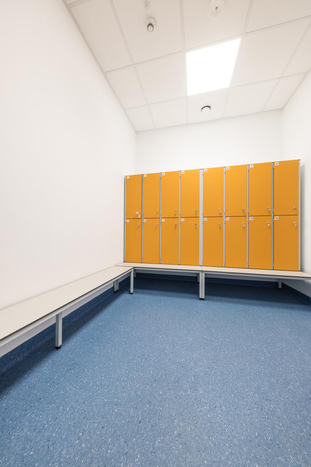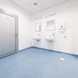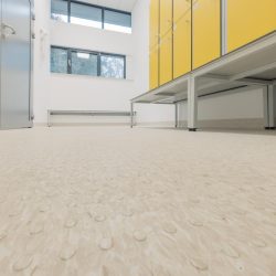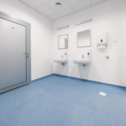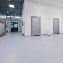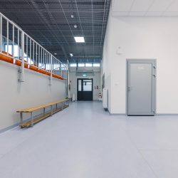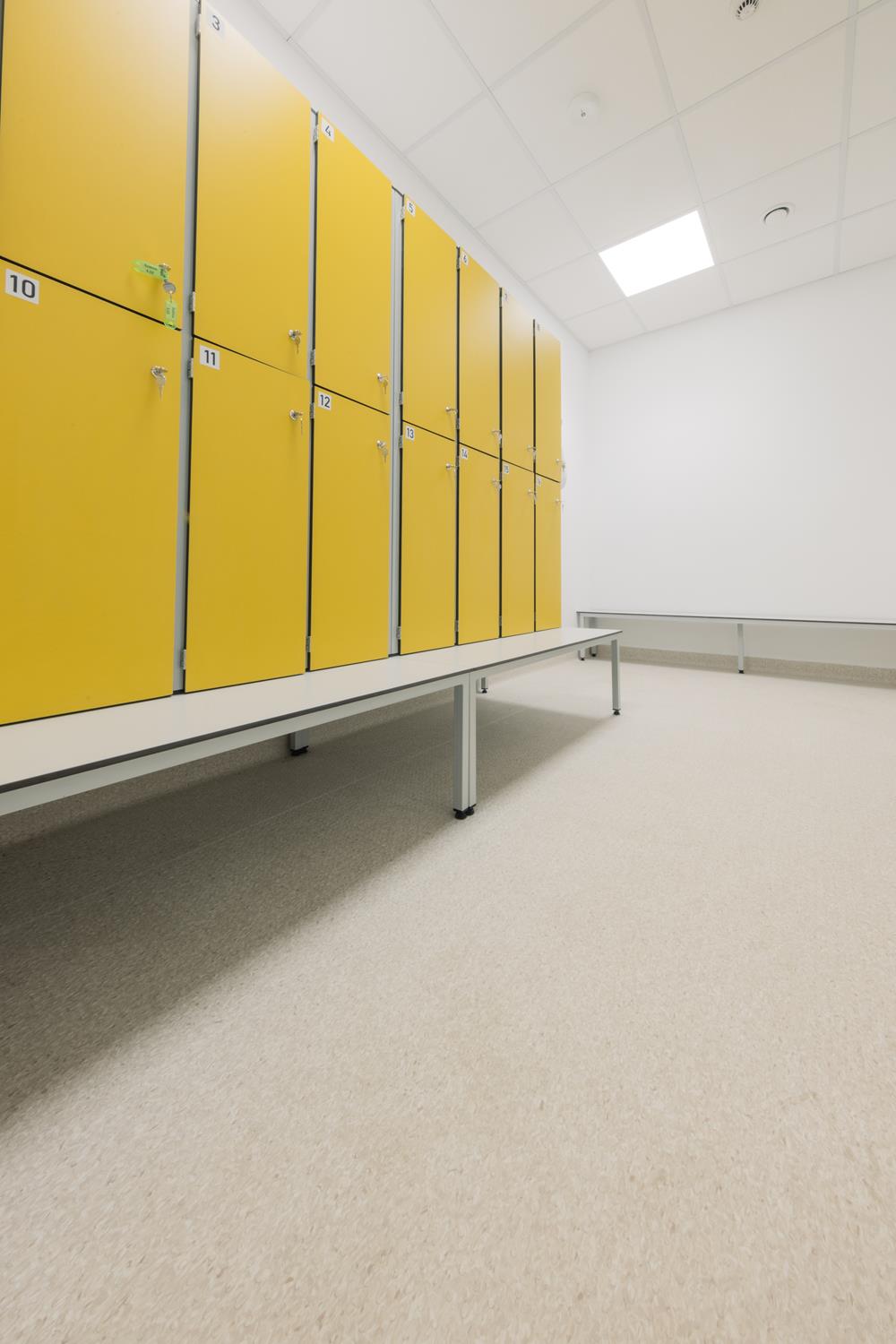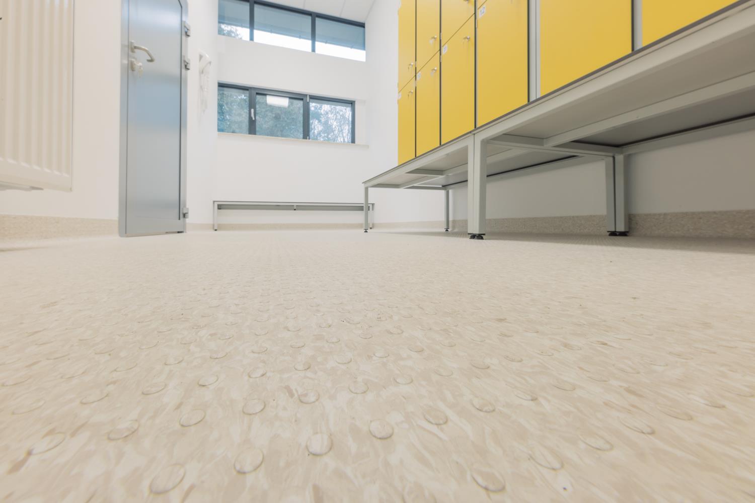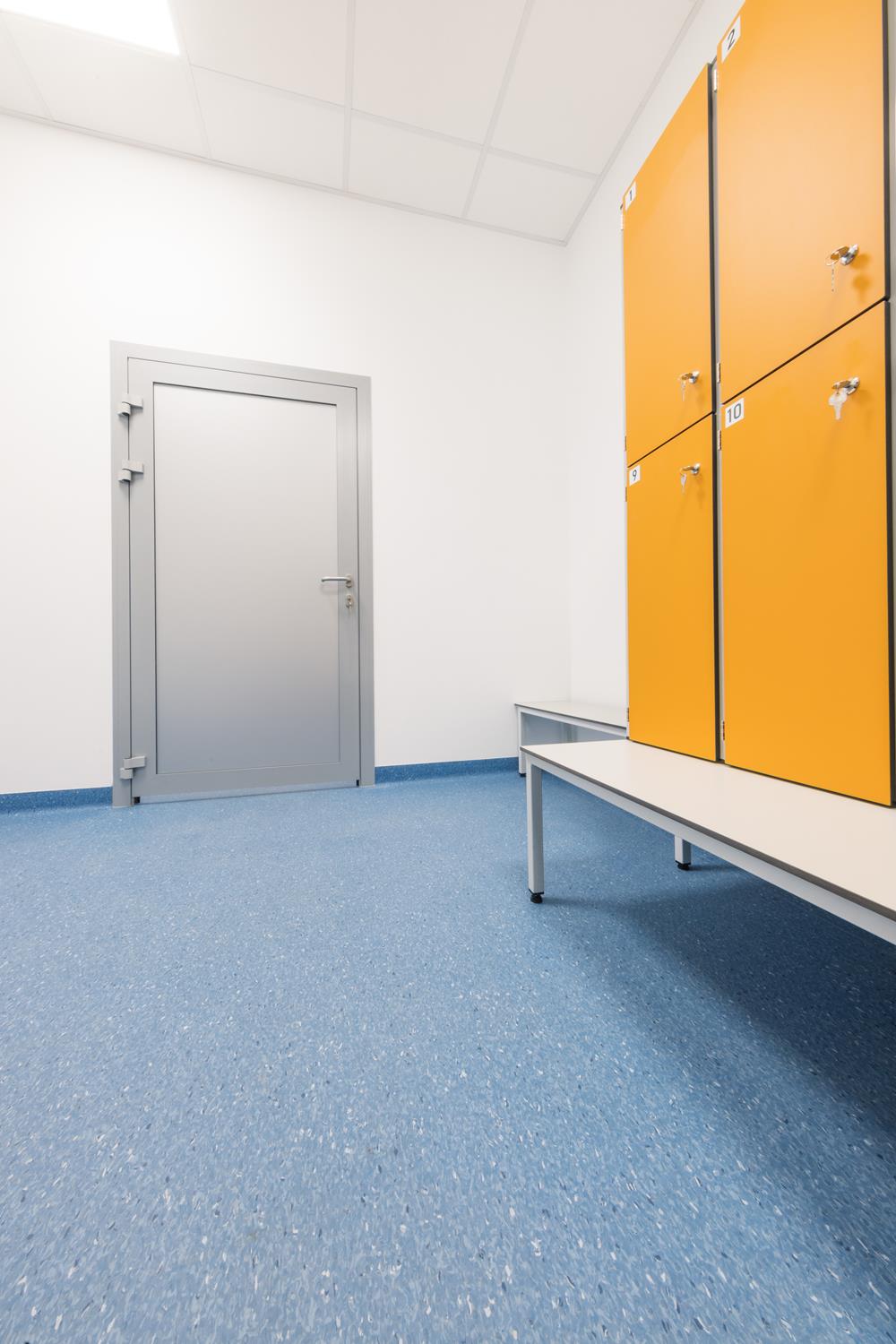 WYKORZYSTANE MATERIAŁY/ PRODUKTY/ ROZWIĄZANIA: Wykładzina Fatra NFE Sparkle, wykładzina Gerflor Trafasafe Ultra, wykładzina Tarkett Granit Multisafe oraz okładzina ścienna Tarkett Wallgard.