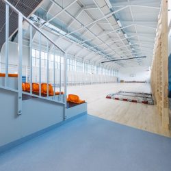ZAŁOŻENIA PROJEKTOWE: Ułożenie wykładziny PVC oraz okładzin ściennych w salach sportowych, łazienkach, szatniach oraz korytarzach OSiR.