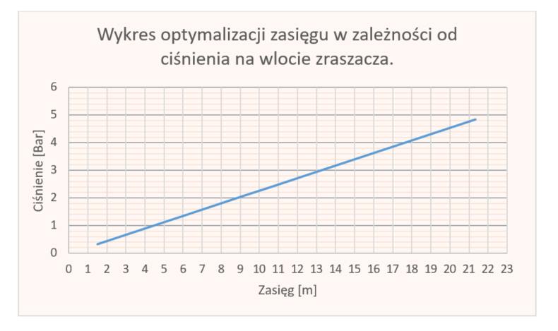 Rys. 8. Wykres optymalizacji zasięgu w zależności od ciśnienia na wlocie zraszacza.